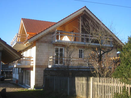 Besonderheit:Die Bauherrn lebten während der Bauzeit in Südafrika -> Kommunikation via Internet (Aufbau einer eigenen Homepage), Hochwärmedämmendes Mauerwerk, aufwändige Sichtdachstühle, Schallschutz zwischen Alt- und Neubau